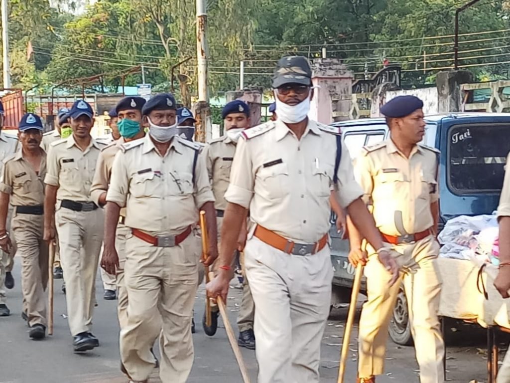 *भालूमाडा़ पुलिस ने किया नगर में फ्लैग मार्च*