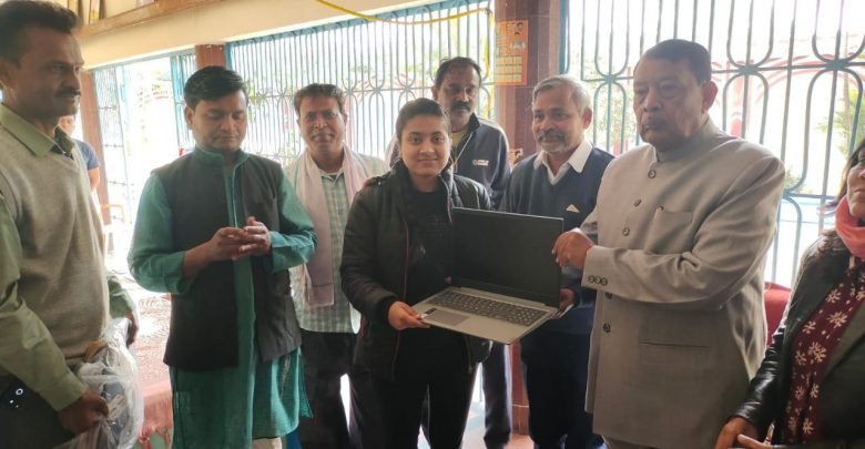 कैबिनेट मंत्री बिसाहूलाल सिंह ने जमुना कॉलरी की टॉपर छात्रा को लैपटॉप देकर किया सम्मानित