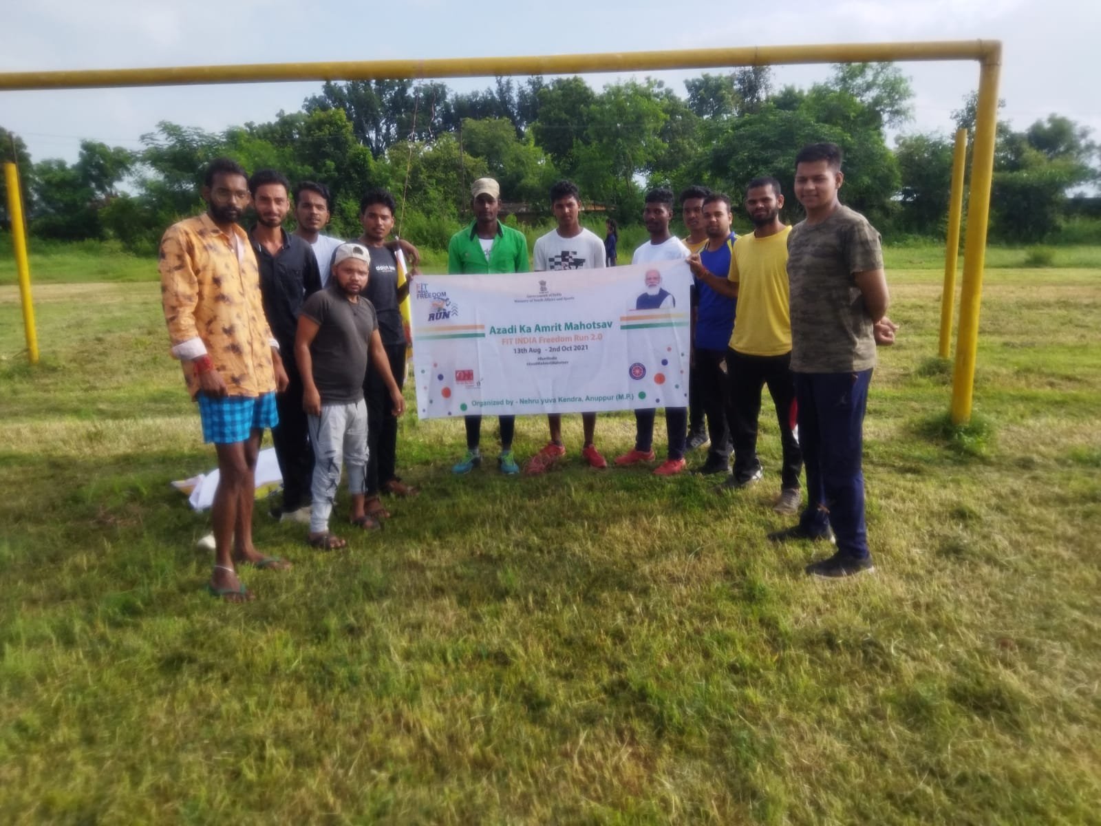 अनूपपुर। नेहरू युवा केन्द्र संगठन के कार्यकर्ता सिद्धार्थ मिश्रा ने भारत की आजादी के 75 वर्ष पूरे होने के उपलक्ष्य मे नेहरू युवा केन्द्र अनूपपुर युवा कार्यक्रम एवं खेल मंत्रालय भारत सरकार के द्वारा राष्ट्रीय सेवा योजना तहत ग्राम पंचायत कोलमी में फिट इण्डिया फ्रीडम रन 2.0 का आयोजन किया। भारत सरकार के तत्वावधान में 16 सितम्बर 2021 को आयोजित किया जा रहा है। यह कार्यक्रम आजादी के 75वें वर्षगांठ के अवसर पर भारत सरकार द्वारा मनाएं जा रहे ’आजादी का अमृत महोत्सव’ के तहत किया गया। खेल मंत्रालय के इस महात्वाकांक्षी अभियान का हिस्सा नागरिकों के बीच फिटनेस को बढ़ावा देना तथा बीमारी, मोटापे आदि से आजादी है। ग्राम पंचायत कोलमी में आयोजित इस कार्यक्रम की शुरूआत ग्राम पंचायत कोलमी में कराया गया। इसमें ग्राम पंचायत के सरपंच, सचिव, रोजगार सहायक एवं गांव के लोगों ने हिस्सा लिया। इसकी षुरूआत राष्ट्रगान और षपथ दिलाया गया। जिसके संचालक सिद्धार्थ मिश्रा थे।