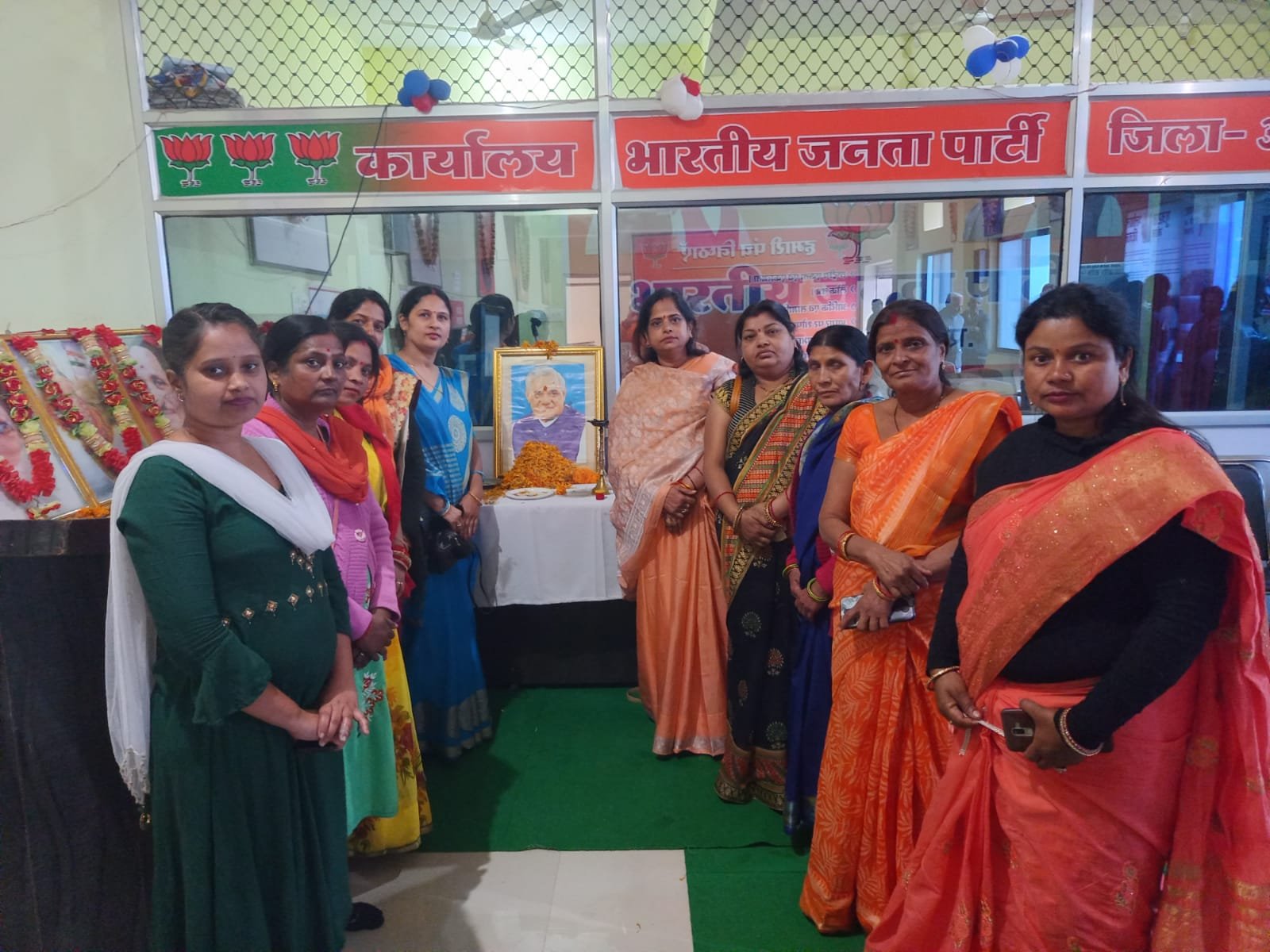 अनूपपुर। भारतीय जनता पार्टी महिला मोर्चा के द्वारा भारत रत्न से सम्मानित पूर्व प्रधानमंत्री स्वर्गीय अटल बिहारी बाजपेई के जन्मदिन पर जिले के समस्त मंडलों में विभिन्न कार्यक्रमों का आयोजन किया गया जिसमें महिलाओं ने अटल बिहारी वाजपेई के छाया चित्र पर श्रद्धा सुमन अर्पित करते हुए उन्हें नमन किया और उनके आदर्शों पर कार्य करने का संकल्प लिया। भाजपा महिला मोर्चा प्रदेश अध्यक्ष श्रीमति माया नारोलिया व भाजपा जिला अध्यक्ष बृजेश गौतम के मार्गदर्शन में भाजपा महिला मोर्चा जिला अध्यक्ष रश्मि खरे के द्वारा अनूपपुर जिले के समस्त मंडलों में महिला मोर्चा के द्वारा अटल बिहारी वाजपेई की जयंती मनाए जाने की रूपरेखा तैयार की गई और इसी कड़ी में 25 दिसम्बर 2021 को भारत रत्न अटल बिहारी वाजपेयी की जन्मजयंती व सुशासन दिवस महिला मोर्चा के द्वारा वाजपेयी जी के चित्र पर पुष्पांजलि अर्पित किया गया स भाजपा कार्यालय, जिला अस्पताल एवं वृद्धा आश्रम में टोपी और मोजा व फल वितरण किया गया, इस कार्यक्रम में महिला मोर्चा जिला अध्यक्ष रश्मि खरे ने अटल बिहारी वाजपेई के जीवन पर प्रकाश डालते हुए कहा अटल अपने राजनीतिक जीवन में फैसले लेने के लिए भी अटल माने जाते रहे उनका लिया हुआ हर फैसला मील का पत्थर साबित हुआ अटल ने संगठन सरकार चलाने में उनके द्वारा लिए गए फैसले हमेशा याद किए जाएंगे उनके निर्णय विरोधी भी हंस कर स्वीकार करते थे क्योंकि उनका हर फैसला देश और समाज हित में रहता था उन्होंने सरकार में रहते हुए अनेक ऐसी जनकल्याणकारी योजनाएं लागू की जिसका आज भी अंतिम छोर के व्यक्ति को लाभ मिल रहा है महिला मोर्चा द्वारा आयोजित किए गए विभिन्न कार्यक्रमों में महिला मोर्चा की मंत्री गुड़िया रौतेल, महिला मोर्चा जिला महामंत्री रमा मिश्रा, जिला उपाध्यक्ष पूर्णिमा सिंह, छाया सोनी, ज्योति सोनी, कोषाध्यक्ष बवीता पाण्डेय, मंत्री नीलम अग्रवाल, सम्पतिया राठौर, कार्यालय मंत्री ममता कोरी, जिला कार्यकारिणी सदस्य आशा टावरी, भाजपा मंडल उपाध्यक्ष गायत्री रैकवार, रेखा, सावित्री एवं समस्त महिला मोर्चा की बहने कार्यक्रम में सम्मिलित हुई।