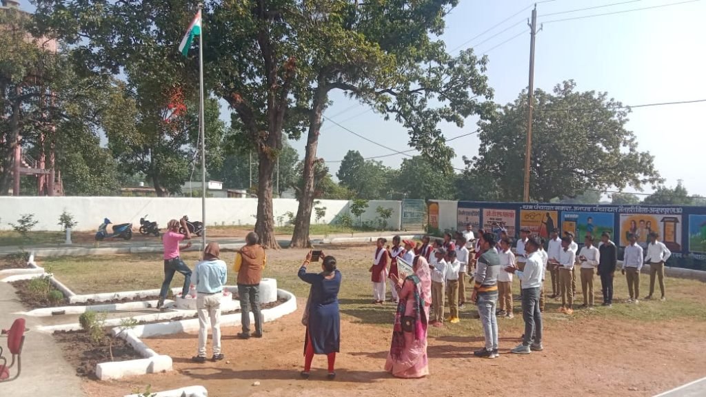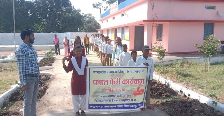 अनूपपुर। 01 नवम्बर को मध्यप्रदेश जन अभियान की नवांकुर संस्था शुभम समाज सेवी संस्थान के द्वारा ग्राम सकरा विकासखंड जैतहरी मे मध्यप्रदेश स्थापना दिवस के अवसर पर प्रातः 8 बजे बालक छात्रावास से प्रभात फेरी का आयोजन किया गया। जो छात्रावास से चल कर पंचायत भवन पहुंचकर ध्वजारोहण का कार्यक्रम किया गया। और साथ ही मध्यप्रदेश गीत गायन किया गया तत्पश्चात सकरा ग्राम भ्रमण का कार्यक्रम किया गया। उक्त कार्यक्रम में सकरा पंचायत के सरपंच संतोष सिंह, सचिव संजय मिश्रा, छात्रावास के अधीक्षक चेतन लाल पटेल, शुभम समाज सेवी संस्थान के कार्यक्रम समन्यवयक ओमकांत शुक्ला, बीएसडब्ल्यु छात्र राकेश कुशवाहा, अतिरत शुक्ला, निखिल शुक्ला, एमएसडब्ल्यु के छात्रा पूजा त्रिपाठी एवं अन्य लोग उपस्थिति रहें।