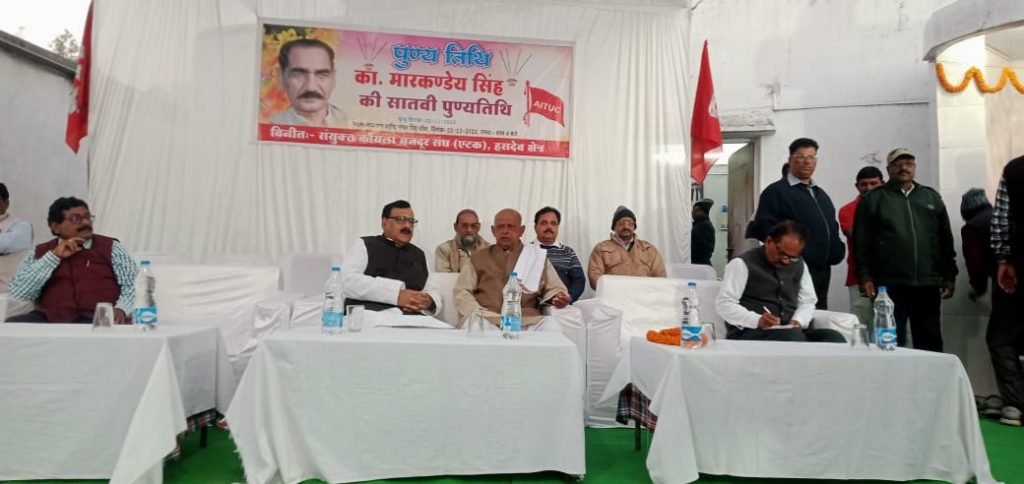राजनगर। मजदूरों के मसीहा कहे जाने वाले कामरेड मारकंडेय सिंह की आठवीं पुण्यतिथि भगत सिंह चौक राज नगर में मनाई गई जहां पर बतौर मुख्य अतिथि एटक के केंद्रीय महामंत्री कामरेड हरिद्वार सिंह उपस्थित थे तो विशेष अतिथि के रूप में महामंत्री कन्हैया सिंह, जिला पंचायत अध्यक्ष प्रीति रमेश सिंह नगर परिषद अध्यक्ष यशवंत सिंह उपाध्यक्ष धनंजय सिंह पूर्व जिला पंचायत अध्यक्ष नागेंद्र सिंह पूर्व अपर कलेक्टर रमेश सिंह मुख्य महाप्रबंधक हसदेव क्षेत्र यू टी कंजरकर इंटक के महामंत्री जय प्रकाश श्रीवास्तव बीएमएस के अशोक माली सीटू से रामू यादव सभी क्षेत्रों के अध्यक्ष महासचिव एवं क्षेत्र के विभिन्न इकाइयों से एटाकके कार्यकर्ता एवं पदाधिकारी तथा कामरेड मारकंडेय सिंह के भाई बब्बन सिंह पुत्र अजीत सिंह सहित अन्य जनमानसउपस्थित थे जहां उपस्थित लोगों ने उन्हें अपनी श्रद्धांजलि दी। जहां उपस्थित अतिथियों ने कहा कि कामरेड मारकंडे सिंह मजदूरों एवं क्षेत्र के विकास में जो योगदान दिया है उसे योगदान को हम भुला नहीं सकते वह हमेशा दलगत राजनीति से उठकर मजदूरों की हित की बात करते थे यही कारण था कि न केवल एटक की सभी श्रम संघ के सदस्य उनका सम्मान करते थे वही क्षेत्रीय महामंत्री कामरेड कन्हैया सिंह ने कहा कि वह मजदूरों के मसीहा थे जिन की कमी को कोई पूरा नहीं कर सकता फिर भी उनकी पुण्यतिथि के दिन हम सभी लोग इसी आशा से इकट्ठा होता है कि हम में से कोई उनके जैसा निकल कर आ जाए इस अवसर पर विजय सिंह संजय सिंह नवीन खान शिवेंद्र बहादुर सिंह मणि तिवारी बृजभूषण सिंह शहीद एटक के कार्यकर्ता एवं पदाधिकारी उपस्थित थे।