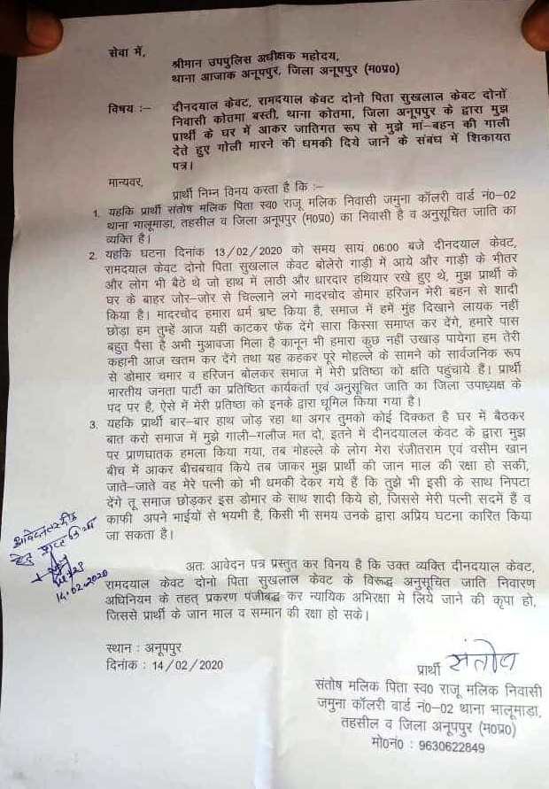 हमारे द्वारा मौके पर पहुंचकर शिकायतकर्ता ,गवाहों , ग्राम पंचायत के जनप्रतिनिधियों तथा आम जनता के बीच शिकायत पत्र की जांच की गई जो निराधार पाया गया।