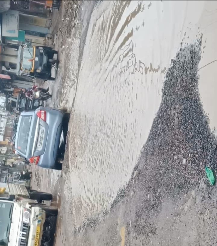 मुख्य मार्ग गड्ढो में तब्दील, बारिश का पानी सड़क में हुआ भराव