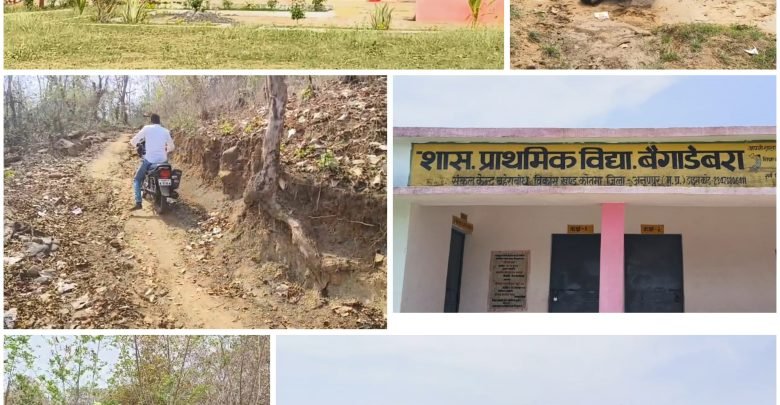 बैगाडेबरा गांव के रहवासियों कि स्थिती यह है कि उनके पास स्वयं के ग्राम पंचायत तक जाने के लिए एक सड़क तक भी मौजूद नही है। जिससे वह बिना परेशानी उठाए आवागमन कर सकें। लिहाजा अनूपपुर जिले कि अंतिम सीमा पर बसे इस गांव के रहवासियों को अपने ही पंचायत भवन तक जाने के लिए जंगल के उबड़-खाबड़ भरी पगडंडी रास्तों का सहारा लेना पड़ता है। वहीं अगर शिक्षा और बिजली, पानी सहित स्वास्थ्य सुविधाओं पर नजर डालें तो मालुमात होता है। कि यहां शिक्षा के नाम पर बच्चे गांव के प्राथमिक पाठशाला में 5 वीं तक पढ़ाई करने के बाद, या तो आगे कि पढ़ाई बंद करने को विवश हैं। या फिर पडो़सी छत्तीसगढ़ राज्य कि तरफ कूच करते हैं। बिजली के नाम पर भी यदा-कदा स्थानों पर लगे चंद सोलर पैनल के भरोसे ही इनकी रात गुजरती है। उपयोगी पानी कि सुविधाऐं भी शासन से इन्हे सिर्फ इतना ही मिला है। कि अलग-अलग मोहल्लों में लगे दो हैण्डपम्प पर ही पूरा गांव आश्रित हैं। यह हैण्डपम्प भी जब कभी खराब हो जाता है अगर। तब इन ग्रामीणों को बूंद-बूंद पानी के लिए भी कडी़ मशक्कत करना पड़ता है, विशेषकर ग्रीष्मॠतु के दौरान। स्वास्थ्य सुविधाऐं ऐसी कि उपचार के लिए यहां किसी भी प्रकार कि शासकीय अशासकीय चिकित्सक व सुविधाएं मौजूद नही है। सड़क नही होने के कारण आपातकाल में मरीज को चारपाई के सहारे जंगल के रास्ते उपचार के लिए ले जाना पड़ता है।