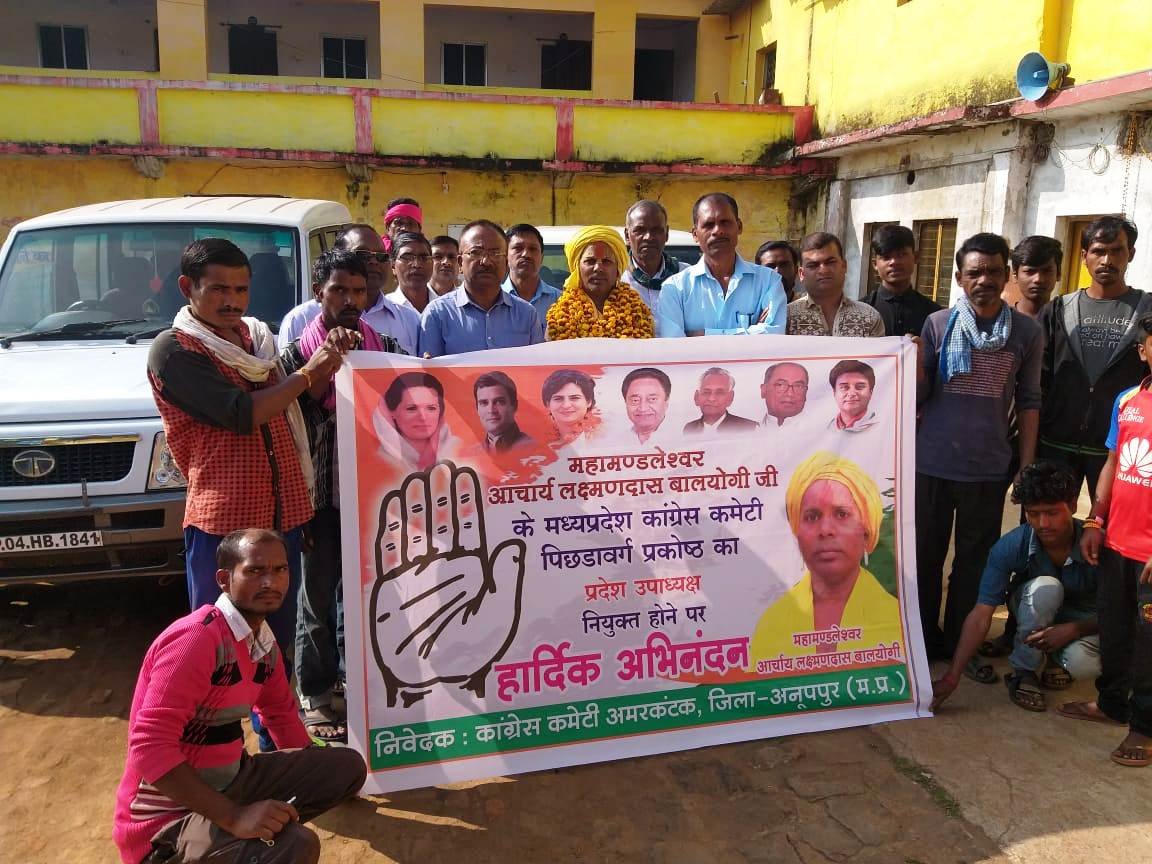 राजेन्द्रग्राम। 5 नवम्बर 2019 को महामण्डलेश्वर आचार्य बालयोगी लक्ष्मण दास महाराज को म.प्र. कांग्रेस कमेटी पिछड़ा वर्ग प्रकोष्ठ का प्रदेश उपाध्यक्ष पद पर नियुक्त होने उपरांत मंडलम कांग्रेस कमेटी अमरकंटक द्वारा स्वागत, सम्मान, अभिनंदन किया गया। कांग्रेस कार्यकर्ताओं द्वारा खुशी का इजहार करते हुए बधाई दी। मंडलम कांग्रेस कमेटी अमरकंटक के कार्य कर्ताओं द्वारा राष्ट्रीय अध्यक्षा श्रीमती सोनिया गांधी युवाओं के प्रेरणा श्रोत राहुल गांधी राष्ट्रीय अध्यक्ष पिछड़ा वर्ग ताम्रध्वज साहू महामंत्री दीपक बाबरिया वर्ग, प्रदेश कांग्रेस अध्यक्ष एवं मुख्यमंत्री कमलनाथ एवं प्रदेष उपाध्यक्ष पिछड़ा वर्ग राजमणि पटेल सांसद के प्रति धन्यवाद एवं आभार व्यक्त किया गया। उक्त कार्यक्रम बैठक में मंडलम कांग्रेस कमेटी अमरकंटक के निम्न कार्यकर्ताओं उपस्थित एवं शामिल हुए। इस दौरान चाय चौपाल पर चर्चा की गई।