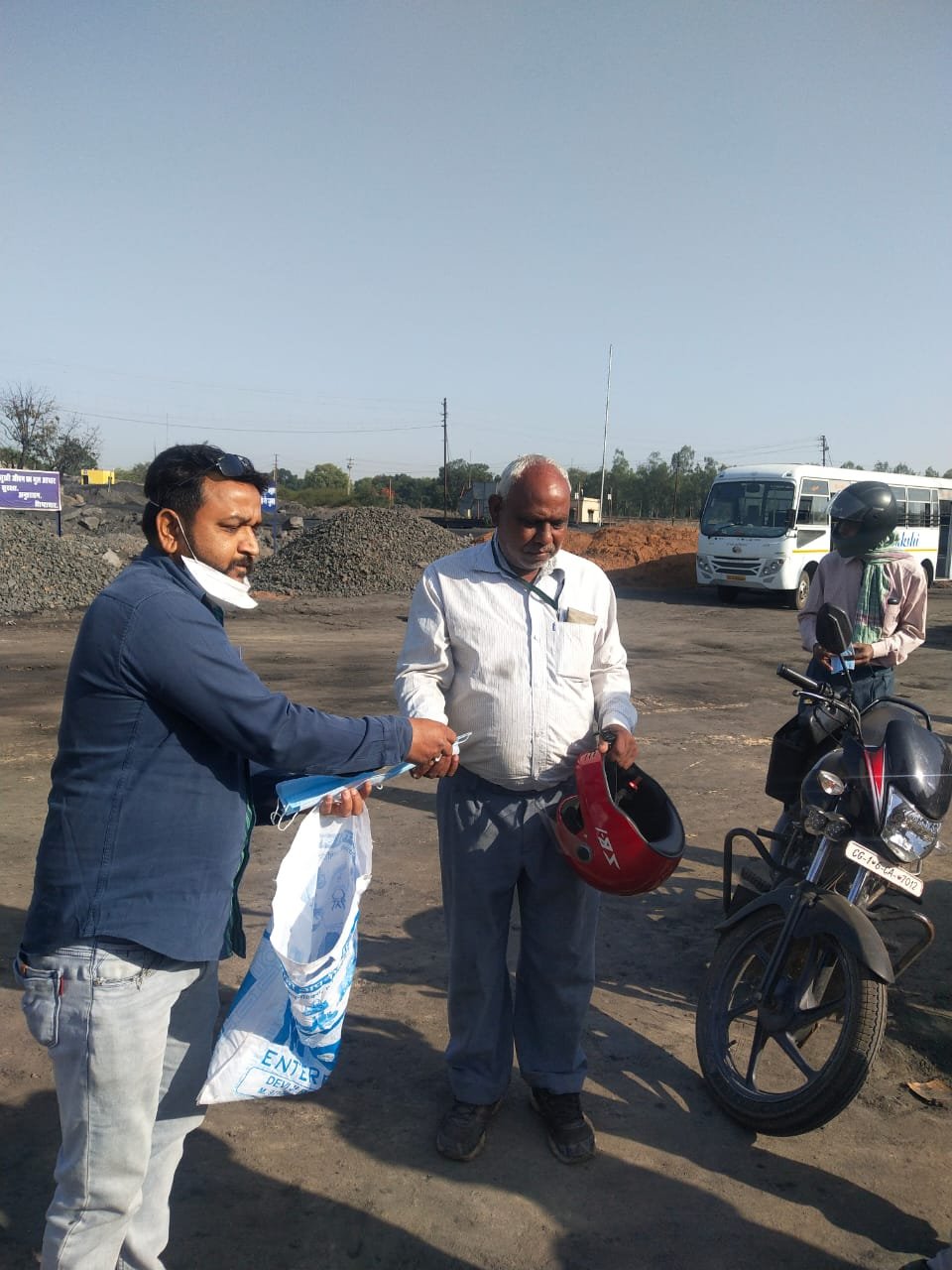 अनूपपुरl एसईसीएल जमुना कोतमा क्षेत्र के एटक यूनियन के क्षेत्रीय अध्यक्ष राजकुमार शर्मा और क्षेत्रीय महामंत्री ऋषि तिवारी ने कोयला खदानों में काम करने वाले श्रमवीरों की सुरक्षा की दृष्टि से मास्क बांटकर उन्हें कोरोना से बचाव के लिए समझाइश दी ।क्षेत्रीय अध्यक्ष राजकुमार शर्मा और महामंत्री ऋषि तिवारी ने कोयला खानों में काम करने वाले तमाम मजदूरों से अपील की है कि सुरक्षित रह कर तथा शासन के दिशा निर्देशों का पालन करते हुए इस संकट की घड़ी में कोयला उत्पादन में जो अपनी अहम भूमिका निभा रहे हैं वह अपने आप में देश के लिए बहुत बड़ा योगदान है सभी कोयला कामगार इसी प्रकार अपने आप को सुरक्षित रखते हुए कोयला उत्पादन में भी अपनी भूमिका आधा करें। जिससे बिजली उत्पादन के अलावा अन्य क्षेत्रों पर इसका असर दिखाई ना दे ।एटक यूनियन की तरफ से नेताओं ने अपने कालरी कामगारों को सुरक्षा की दृष्टि से मास्क बांटकर सब सभी को सुरक्षा के प्रति समझाइश दीl