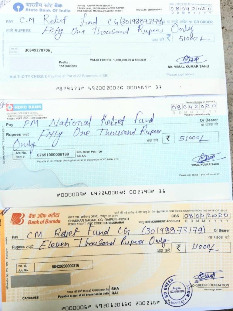 कांग्रेसी नेता विमल ने एक लाख तेरह हजार रुपये पीएम और मुख्यमंत्री कोष में दिया, आमजनों से प्रशासन के नियमों का पालन करने का अपील किया