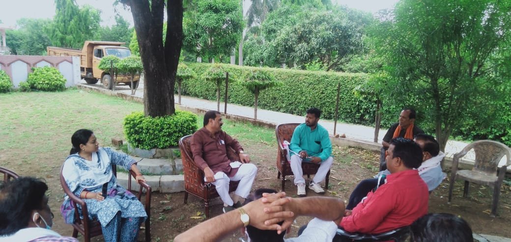 अनूपपुर। कोरोना संक्रमण महामारी के कारण सोशल डिस्टेंस का पालन करते हुए भाजपा कार्यकर्ताओं द्वारा बैठक किया गया। जिसमें शहडोल संसदीय क्षेत्र के सांसद हिमाद्री सिंह, जिला अध्यक्ष बृजेश गौतम एवं नारेन्द्र मरावी पूर्व आयोग अध्यक्ष आजजा के मार्गदर्शन में कार्यकर्ताओं के आरोग्य सेतु एप के बारे में जानकारी दी। इसके अलावा हर पंचायत स्तर में बाहर से आये मजदूरों को सूची बनाये जाने की बात कही गई तथा पंचायत में कार्यकर्ताओं को घर-घर जाकर उनके बारे में जानकारी लेने के लिये आदेष दिये। इस बैठक में राजेन्द्रग्राम के मंडल अध्यक्ष प्रमोद मरावी, चेतन अग्रवाल, विनोद सिंह, मुन्ना लाल गुप्ता, जयहिन्द दुबे गजेंद्र रजक, संजीत सोनवानी, धर्मेंद्र जैसवाल, कुंती सिंह, सरद द्विवेदी उपस्थित थे।