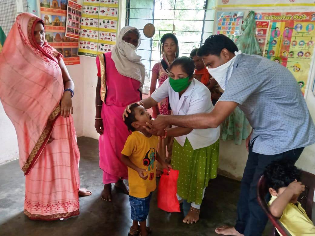 राजनगर कॉलरी। 9 माह से लेकर 5 वर्ष तक के बच्चों में विटामिन ए की पूर्ति के लिए स्वास्थ्य विभाग द्वारा 17 जुलाई से 19 अगस्त 2020 तक विटामिन ए अनु पुराण अभियान चलाया जा रहा है। जिसके तहत शुक्रवार के दिन ग्राम पंचायत डूमरकछार के उपसरपंच विक्रमादित्य चैरसिया ने न्यू कॉलोनी स्थित आंगनबाड़ी केंद्र क्रमांक 159 में बच्चों को विटामिन ए की खुराक पिलाकर उक्त अभियान की शुरुआत की। इस अवसर पर स्वास्थ्य विभाग के कार्यकर्ताओं के साथ-साथ आंगनवाड़ी कार्यकर्ता उपस्थित थी। उक्त दवा के उपयोग से बच्चों में पोषक तत्वों की कमी को दूर करने के साथ-साथ आंखो के रोग एवं कई बीमारियों का समाधान हो सकेगा। वही स्वास्थ्य कार्यकर्ताओं ने कोविड-19 से बचाव के लिए सावधानी बरतते हुए सभी अभिभावकों को दवा पिलाने के लिए चम्मच अपने घर से लाने की अपील की है।